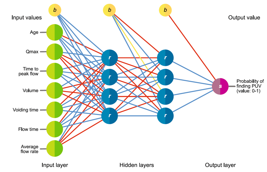 | Model Input | Age, max flow-rate, time to peak flow, volume, voiding time, flow time, average flow rate |